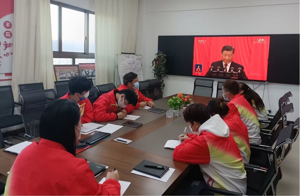 在行知楼213会议室,学院部分团学干部及入党积极分子在主会场集中收看大会开幕直播。全院共设置13个分会场,同时号召在实习岗位上的2020级实习生和往届毕业生通过各种平台收听、收看大会开幕式盛况。