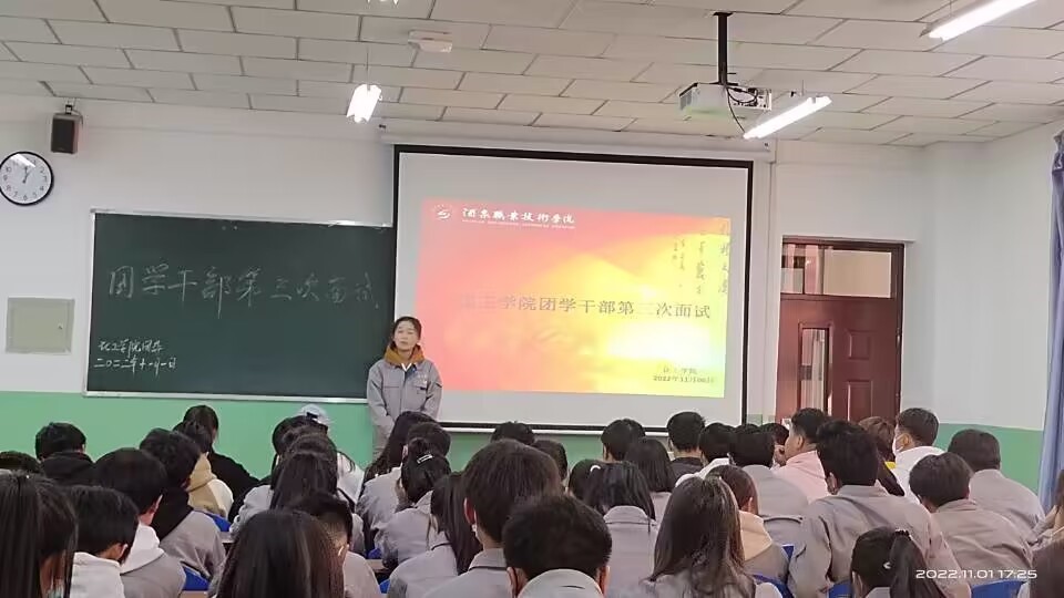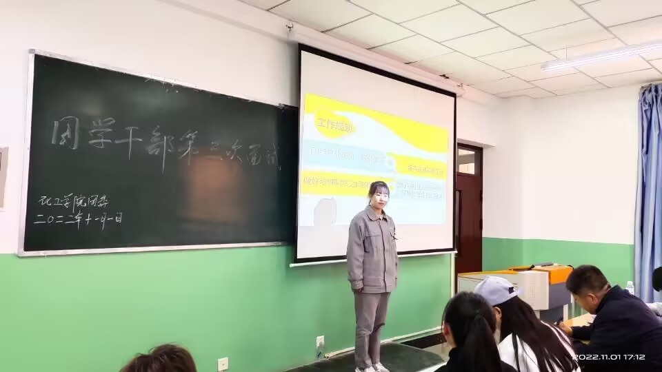 为学习贯彻党的二十大精神,不断强化团的组织力和凝聚力,11月1日,化工学院开展了2022届团学社干部纳新第三轮面试活动。学院副院长徐军新、学生管理办公室主任易建红、团委书记王华、专职辅导员秦桐等老师以及学院团学书记主席团成员、各部门负责人一起担当了评委。