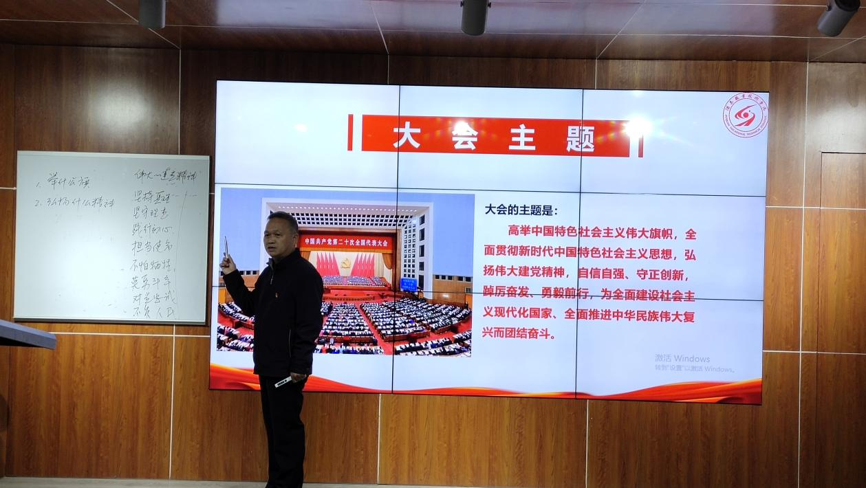 王立智同志以“全面领会党的二十大精神、踔厉奋发、勇毅前行,为全面建设社会主义现代化国家、全面推进中华民族伟大复兴而团结奋斗”为主题,以“七个讲清楚”开篇,围绕党二十大精神学什么、如何学、怎样学,对党的二十大报告的15个部分提出的重大思想观点、重要论断、重大举措做了详细梳理和解读,在全体党员师生中引起强烈共鸣。党课主线清晰、内容丰富、重点突出,既有理论高度又有实践指导,既有宏观阐述又有微观解读,让全体党员对党的二十大主要精神有了更加深刻的理解和认识,对党的二十大的重要部署有了更加准确的把握。