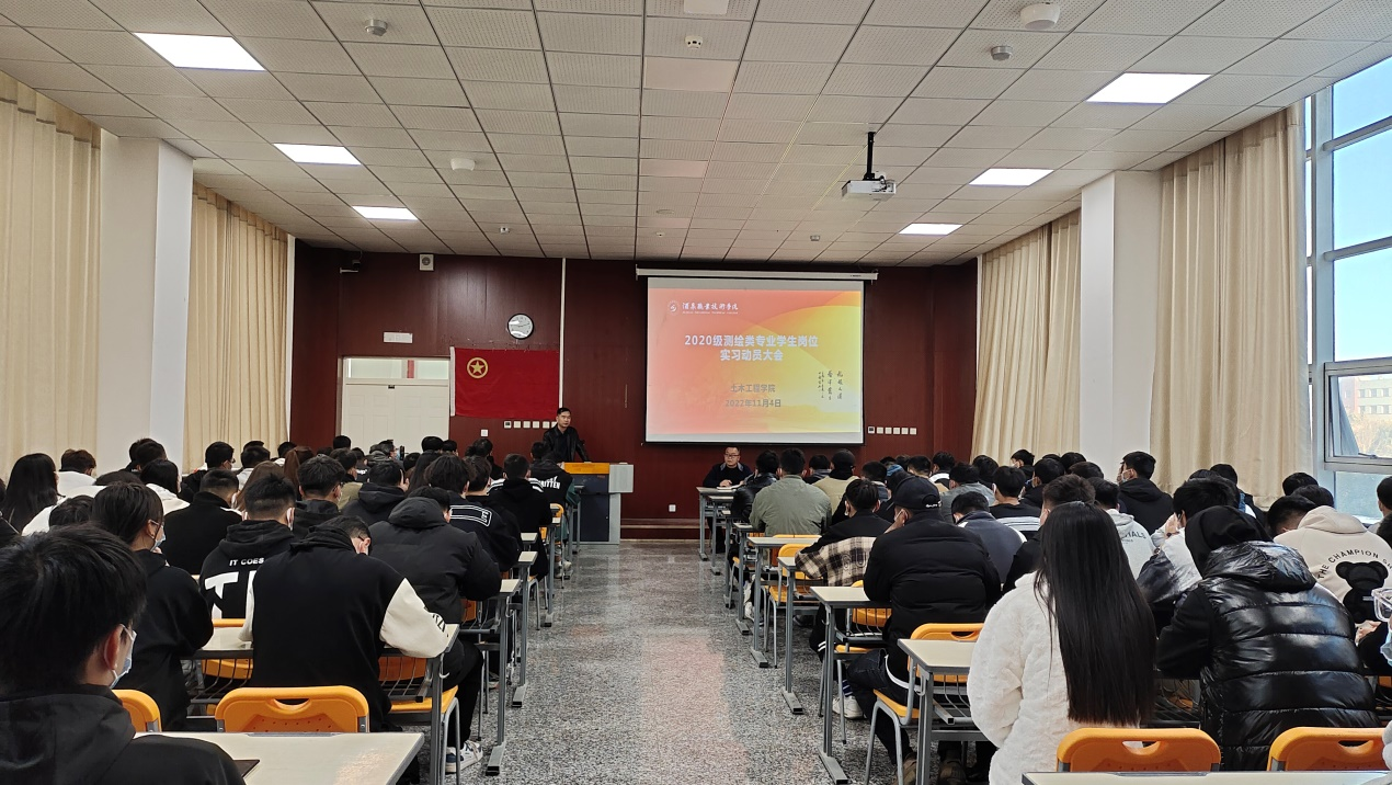 为有效引导广大学生快速完成角色转变、心理调适,以期更好地适应即将开启的实习生活,为职业发展和未来就业奠定坚实的基础,2022年11月4日,土木工程学院在致远楼二楼西阶梯教室成功举办2020级测绘类专业学生实习动员暨安全教育大会。