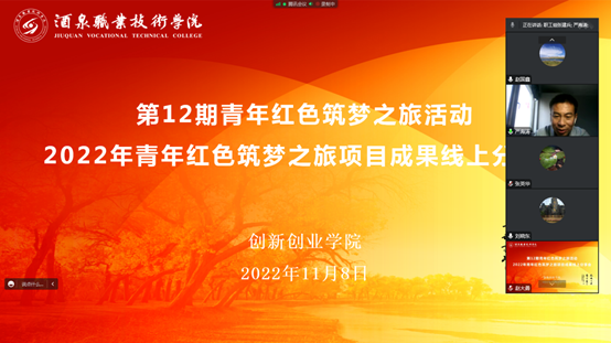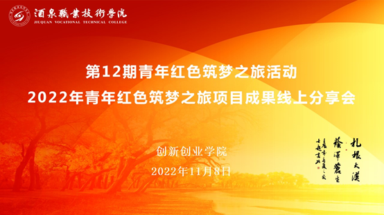 红旅项目的开展,旨在将思政教育与专业教育、创新创业教育相融合,引导师生用实际行动助力乡村振兴。一年来,各项目团队分赴会宁、高台、玉门、肃州区等地,围绕红色教育、走访调研、项目推广、项目对接等方面开展了丰富多彩的活动,将学校的智力、技术和项目资源辐射到广大农村地区,推动了当地社会经济建设,取得了阶段性成果。本次“青年红色筑梦之旅”项目进行结题验收,旨在总结活动经验的同时,能挖掘出更多更好的“青年红色筑梦之旅”项目,为甘肃省的乡村振兴工作贡献一份力量。
