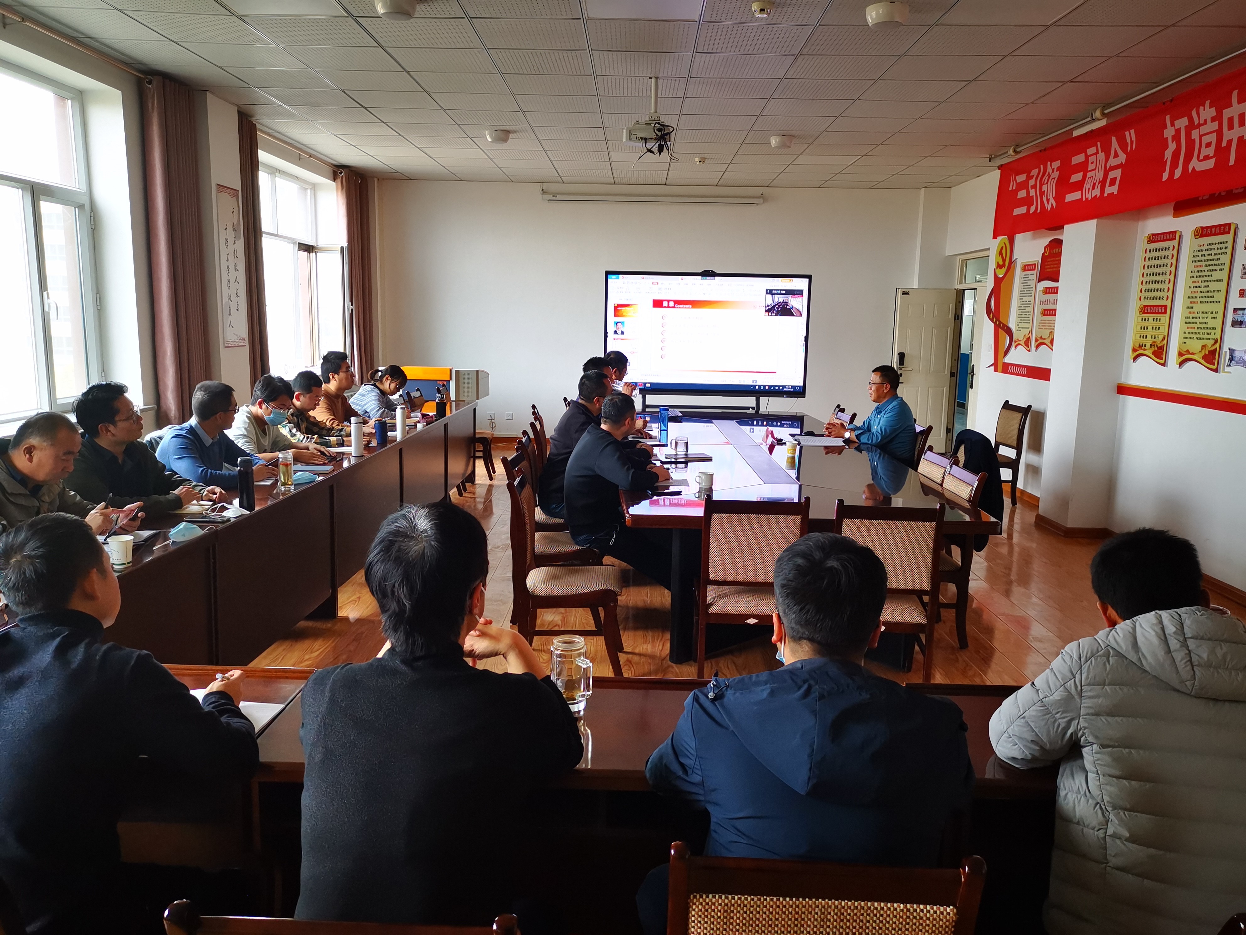2022年11月8日下午,学校党委委员、宣传统战部部长王金明同志为新能源工程学院全体教职工讲授党的二十大专题党课。受疫情影响,党课采取线上线下相结合的方式开展,部分教职工通过腾讯会议在线观看。本次党课以历次党代会对党章的修订情况及党的二十大通过的《中国共产党章程(修正案)》为切入点,带领大家学习新党章。