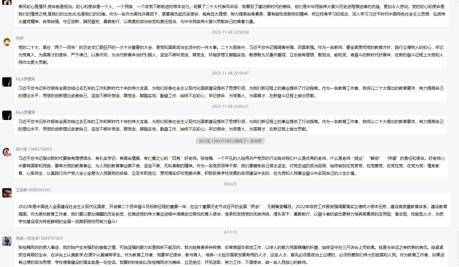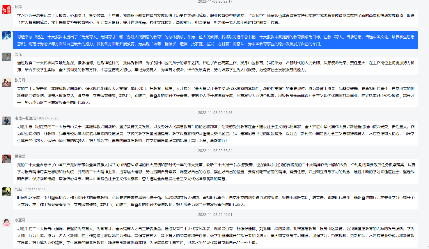 观看结束后,经支部副书记、信息技术服务中心南炯同志号召,党员同志们纷纷在学院党员群内畅所欲言、各抒己见,表示要向先进学习,树坚定信心,永远跟党走的坚强决心。本次活动在热烈的学习交流氛围中结束。居家的老师通过在线平台同步参加了主题党日活动。