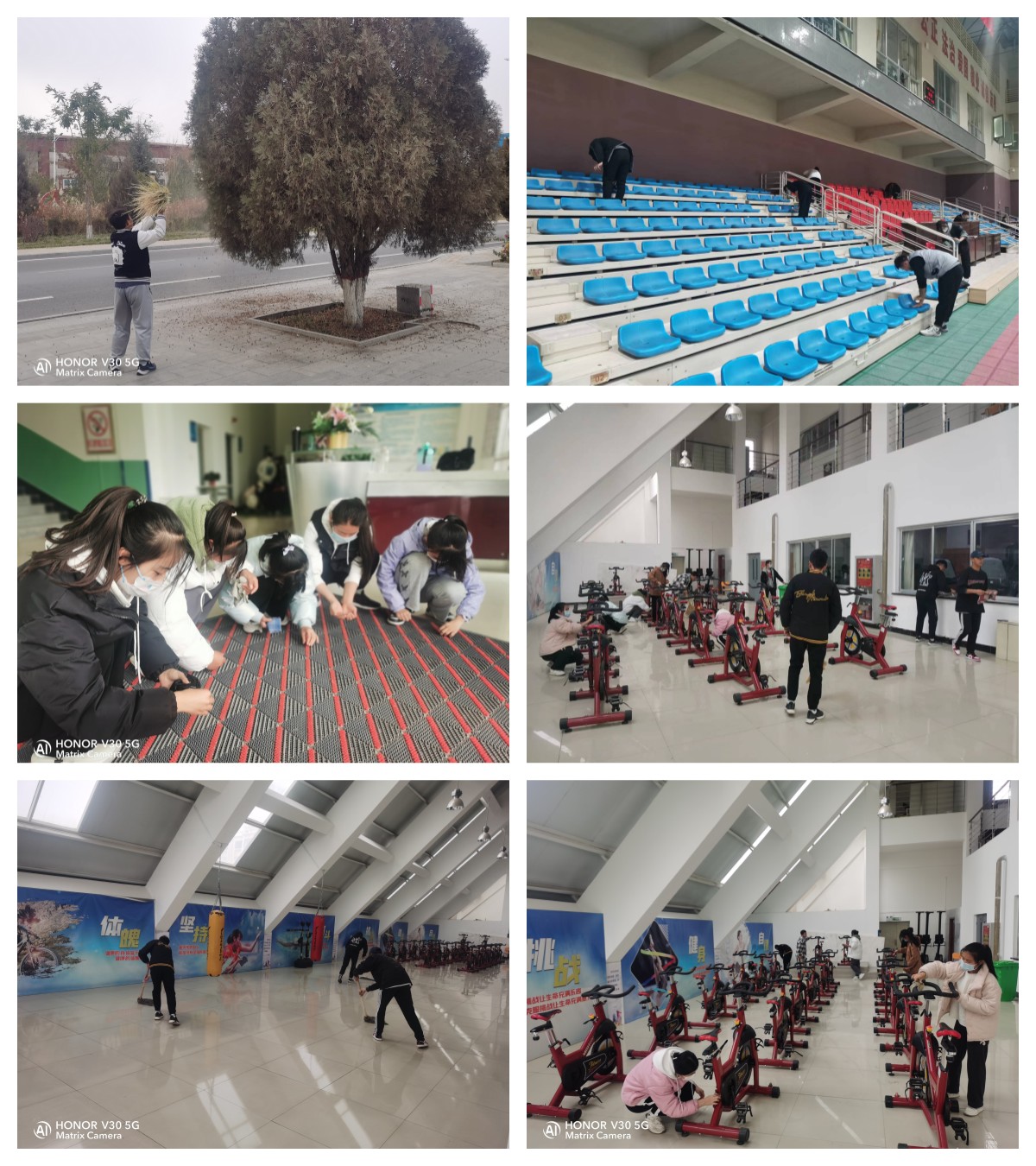 经过简单分工后,各组成员在包干区域内热火朝天地开始劳动。从球类综合馆到健身馆、从乒乓球馆到器材室、从场馆外围到室内卫生死角,大家忙得不亦乐乎。经过两个小时的清扫和消杀,将整个场馆打扮的清爽洁净,焕然一新。