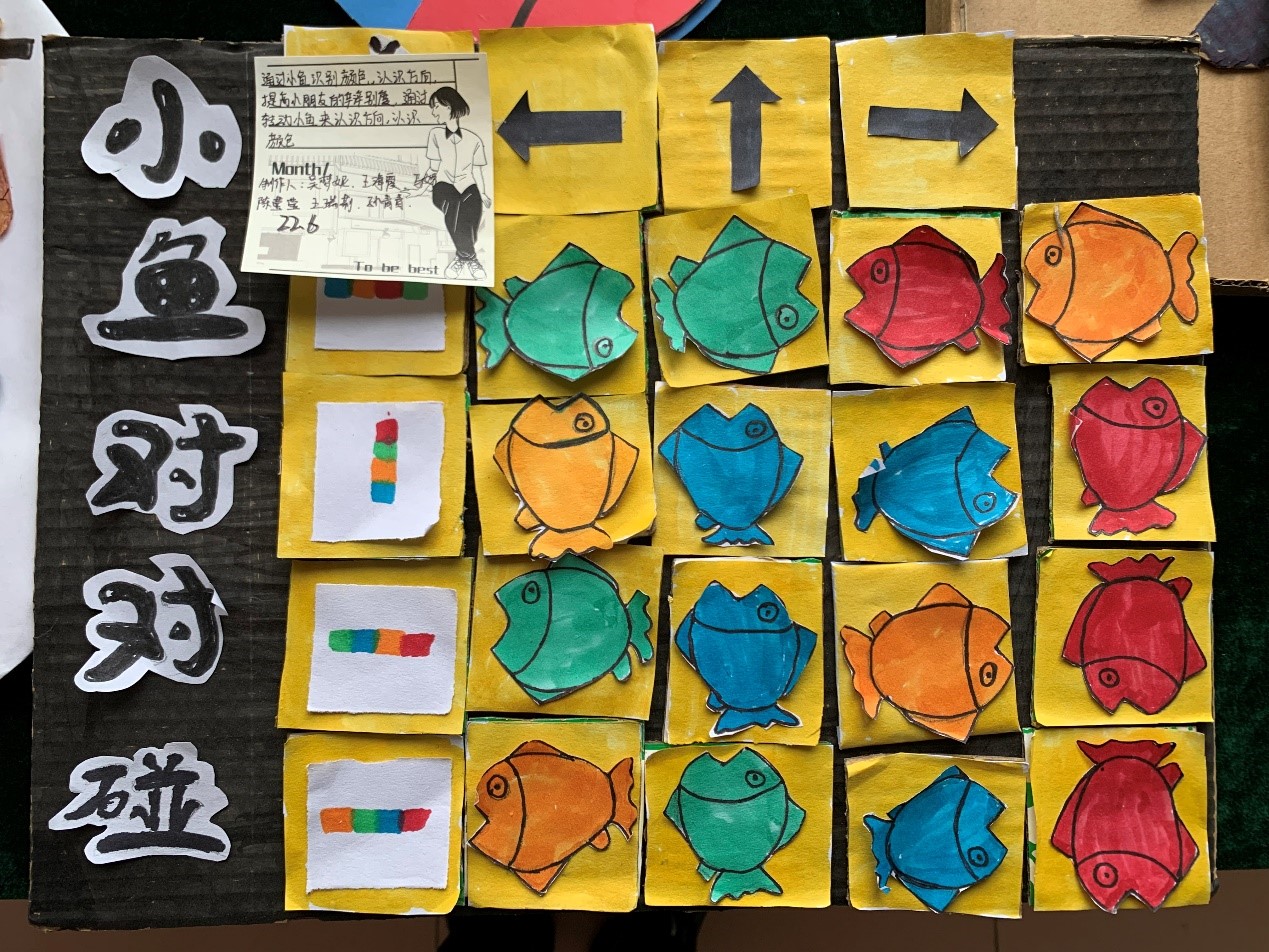 同学们巧妙设计,精心选材,认真制作每一件玩具,充分利用包装盒、纸箱、塑料管、纸杯等废旧材料制作出了“小鱼对对碰”等,一件件构思巧妙、形式各异、造型美观的玩教具。参加展评的作品充分考虑了儿童的年龄特点,展现了较强的趣味性、教育性、实用性和科学性等,涵盖了科学、语言、艺术、社会、益智等类型,且表现形式创新,内容富有教育价值,处处彰显着“准教师”们的教育情怀,充分展现了他们勇于创新的精神。