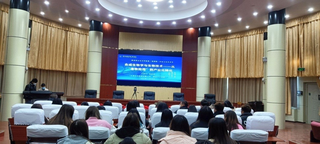 2022年11月20日下午,化工学院邀请江西兄弟医药有限公司研发中心总监张秋华工程师在线上做了题为“合成生物学与生物技术—从‘造物致用’到产业化转化”的学术讲座。化工学院教师代表和90名2021级药品生产技术专业学生、生物工程学院2名教师代表和30名2021级药品生物技术专业学生在逸夫报告厅聆听了本次讲座。