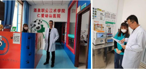曹亮老师作为我院产教融合实训基地(酒泉仁爱动物医院)校内专任教师,具备执业兽医师资格证,长期在动物医院进行企业锻炼,周末坚持出诊,开展小动物诊疗服务和学生实践教学指导工作,取得了较好评价和效果。