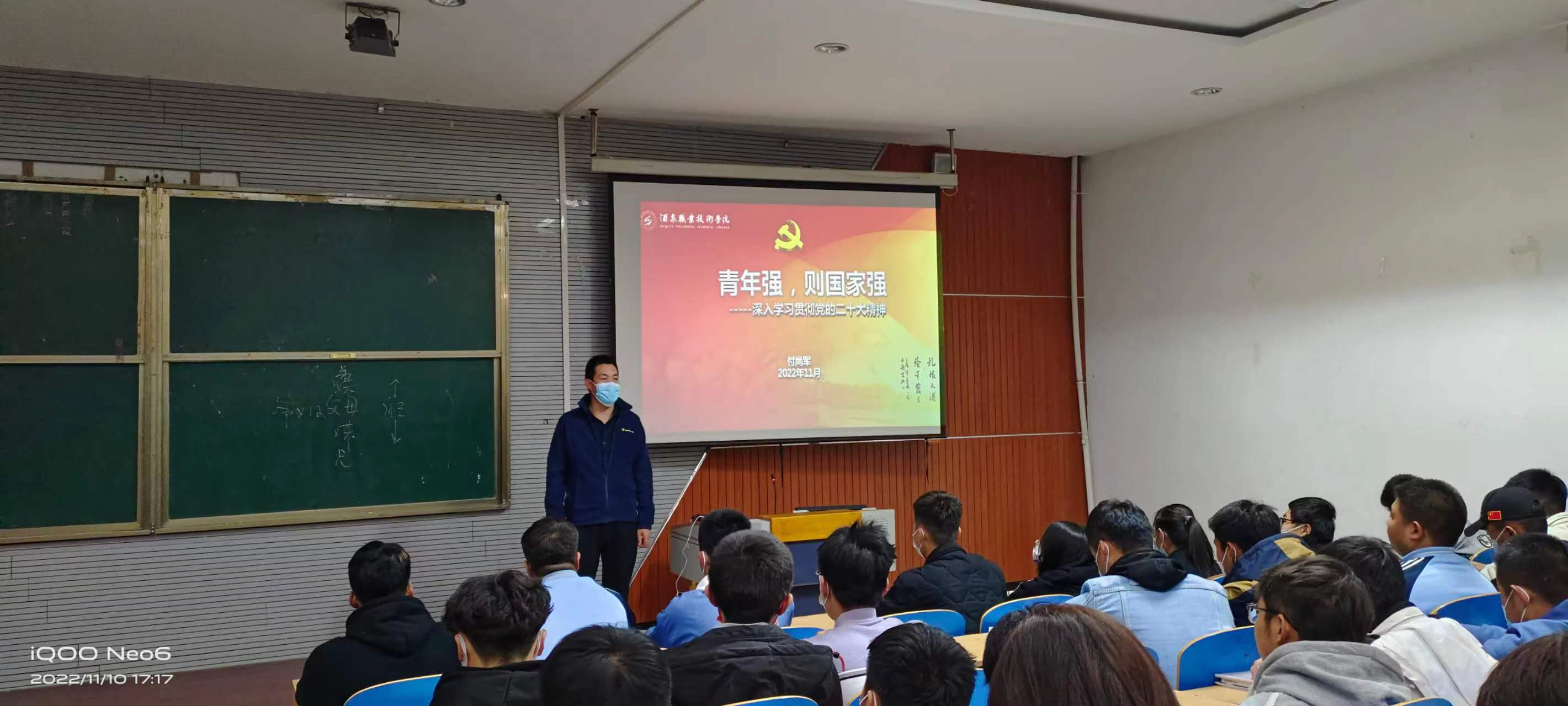 “青年强,则国家强。当代中国青年生逢其时,施展才干的舞台无比广阔,实现梦想的前景无比光明。全党要把青年工作作为战略性工作来抓,用党的科学理论武装青年,用党的初心使命感召青年,做青年朋友的知心人、青年工作的热心人、青年群众的引路人。”付尚军同志以党的二十大报告结尾部分对青年人的希冀开篇,为团员青年解读了党的二十大报告内容。理论宣讲重点给全体青年学生树立了信念,理清了思路,增添了本领,促进党的二十大精神落地生根。