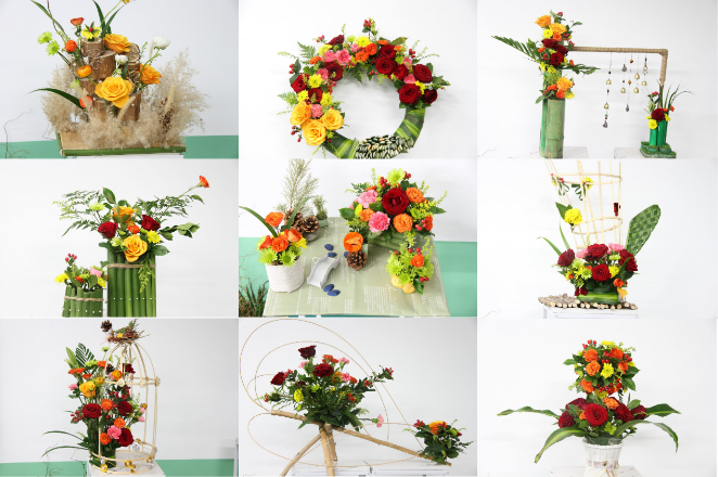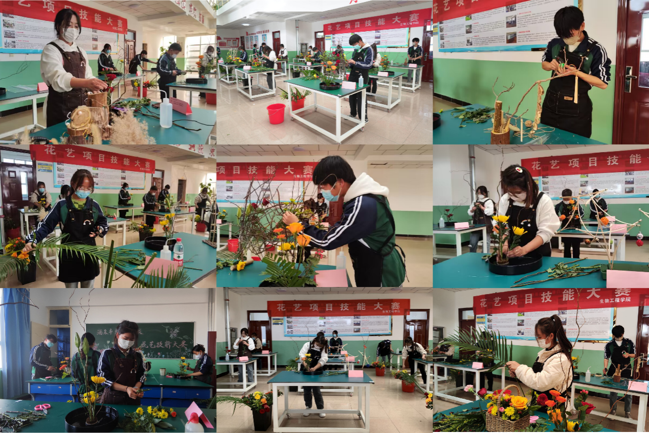 大赛项目分为中国传统插花和现代花艺设计与制作,每位选手在140分钟内完成两个作品。评委由学院领导班子成员、教研室主任及专业老师担任。赛场上秩序井然、气氛紧张而热烈;选手们技艺娴熟,操作有条不紊,集中体现了学校各专业学生娴熟专业技能和水平。通过激烈角逐,最终2020级园艺技术班杜小文、牟文娟、2021级现代农业技术班郭印获得一等奖,2022级农业班刘凡、陈艺婷、2022级动物医学班陈蓉容、董贤国、2020级园艺技术班马子秀获得二等奖,2022级生物药品技术班陈晶道、李引弟、2022级动物医学班雷阳、周英琦、杨晴、2022级农业班赵娜、张建波、崔永刚获得三等奖。