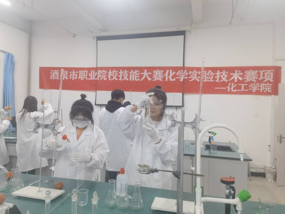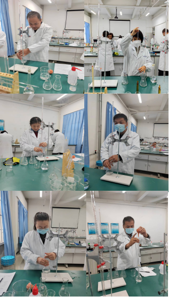 本次大赛赛项安排及评分标准和过程严格按照省赛流程进行,比赛由理论测试和实验操作两部分组成,实验操作选取了分析化学中实验“酸碱滴定实验”和有机化学实验中的“乙酸乙酯的合成”两项实验。来自药品生产技术专业、石油化工技术专业、环境工程技术专业的67名学生参加了学生组比赛,16名专业课教师参加了教师组的比赛。