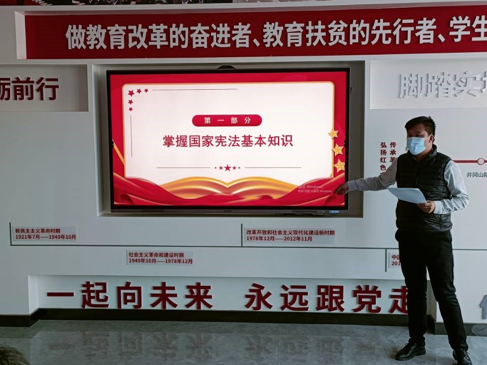 支部纪检委员陶崇瑾老师以《增强宪法观念弘扬宪法精神》为主题就学习宣传贯彻党的二十大精神,推动全面贯彻实施宪法从宪法的地位、我国现行宪法主要内容、国家宪法日的由来、宪法日设立的目的及意义、历年宪法日的主题、宪法与我们生活的联系、宪法规定公民享有的权利和义务等 方面讲解宪法相关知识。