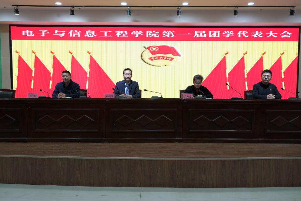 晚上19:30,电子与信息工程学院第一届团学代表大会在图书馆4楼报告厅隆重召开。学院王迎春副院长主持大会,在校全体教师、学院学生代表及团员代表共120余人出席了本次大会。学院党支部书记、院长武兴宝出席大会,代表学院党委向学院团委的成立及第一次学生代表大会的召开表示祝贺。他表示,党和国家的希望寄托在青年身上,青年的发展攸关党和国家的前途命运。广大青年学生要保持战略定力和坚定信念,自觉坚持党的领导,听党话、跟党走,为实现第二个百年奋斗目标、实现中华民族伟大复兴的中国梦而努力奋斗。