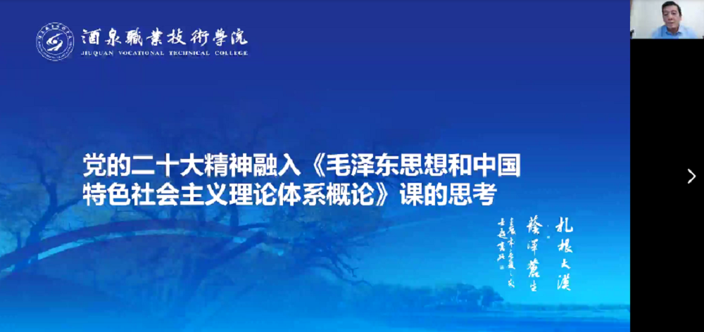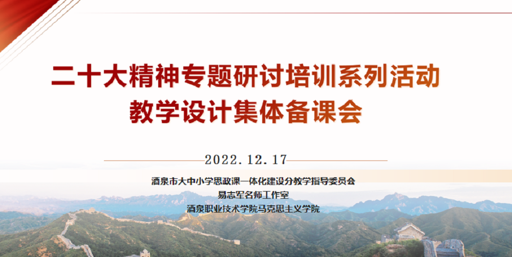 根据酒泉市教育局《关于组织开展党的二十大精神专题研讨培训系列活动》推进党的二十大精神进课程、进课堂、进头脑,的要求,12月18日上午9时,易志军名师工作室、酒泉市大学思政课教学指导委员会、酒泉职业技术学院马克思主义学院共同组织线上集体备课会。酒泉市大中小学思政课一体化建设大学分教学指导委员会成员、易志军名师工作室骨干学员、酒泉农垦技工学校(甘肃广播电视大学农垦河西分校)相关教师出席会议。