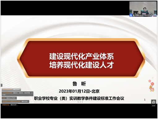 为更好满足国家对职业教育发展的最新要求,进一步落实教育部对标准研制工作的指示精神,切实推动各专业组按要求高质量完成标准研制工作。2023年1月12日-13日,国家职业学校专业(类)实训教学条件建设标准中期工作推进会议通过线上方式举行,会议主办单位为中国职业技术教育学会,我校参与本次标准研制工作的专家组成员参会。