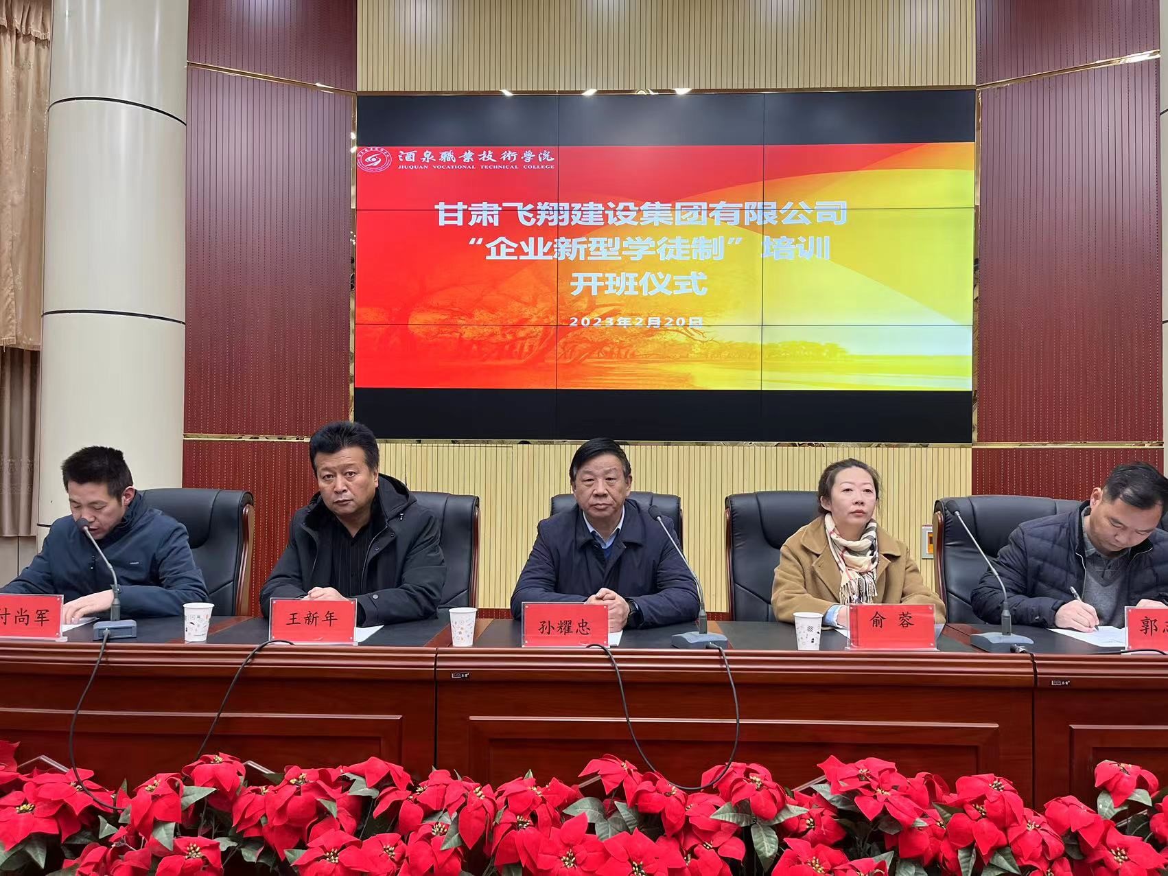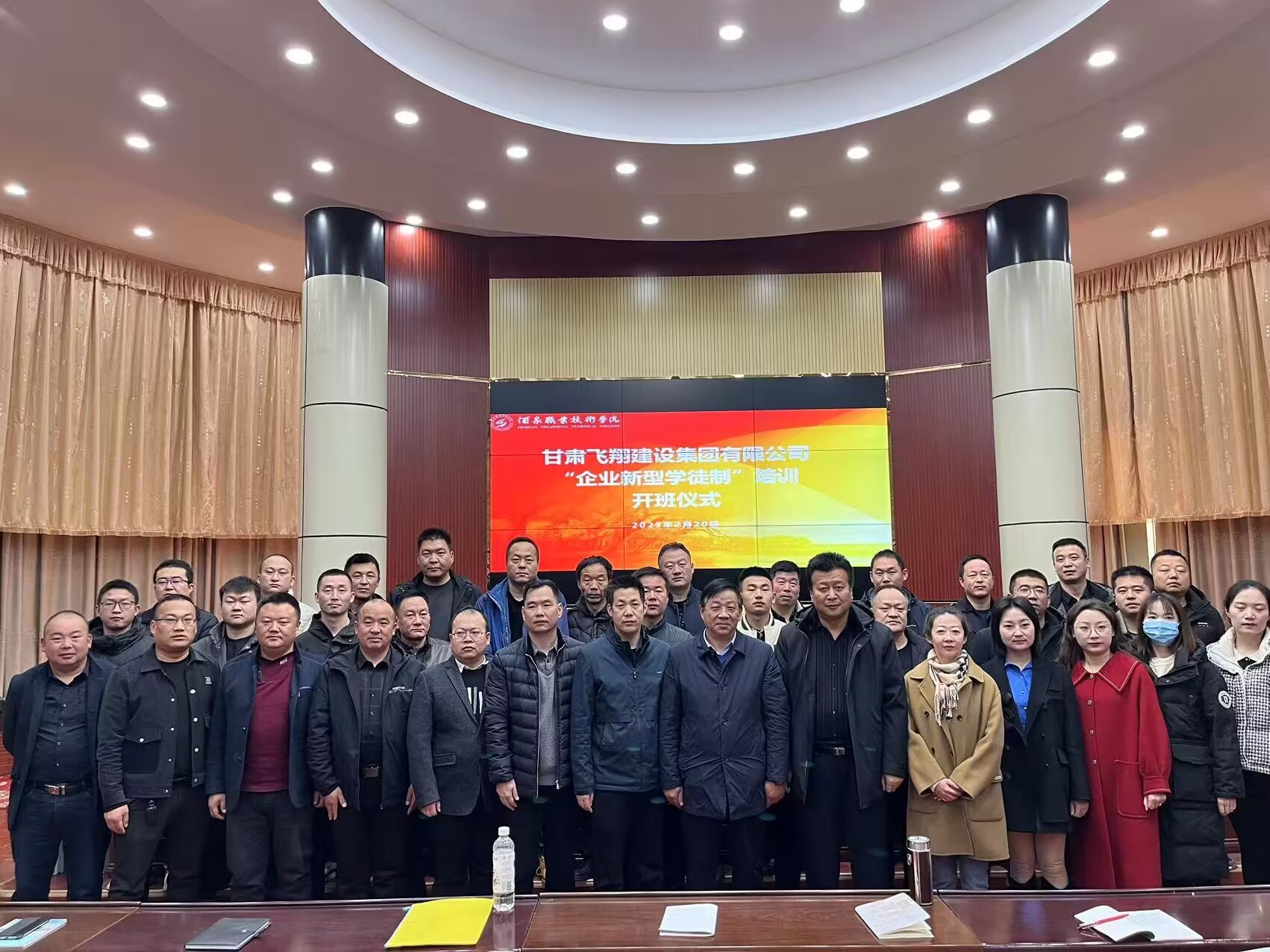 为贯彻落实党的二十大精神,加强新时代技能人才培养,深入推进“技能甘肃”工作任务落实,发挥职业学校培养高技能人才的基础性作用,2023年2月20日上午由我院组织实施的甘肃飞翔集团有限公司“企业新型学徒制”培训班在学校逸夫报告厅顺利开班。甘肃飞翔建设集团有限公司20名培训学员、学院部分教师参加本次开班仪式,甘肃飞翔建设集团有限公司总经理孙耀忠、副总经理王新年,学校培训处副处长俞蓉及土木工程学院相关领导出席开班仪式。