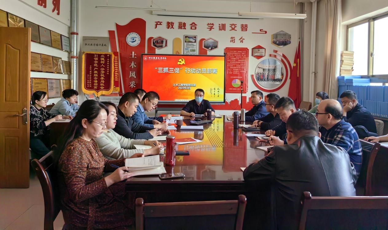 2月26日上午,学生报到当天,土木工程学院召开“三抓三促”行动动员部署会议,洗礼思想,更新观念,重塑状态,凝聚干事创业共识。