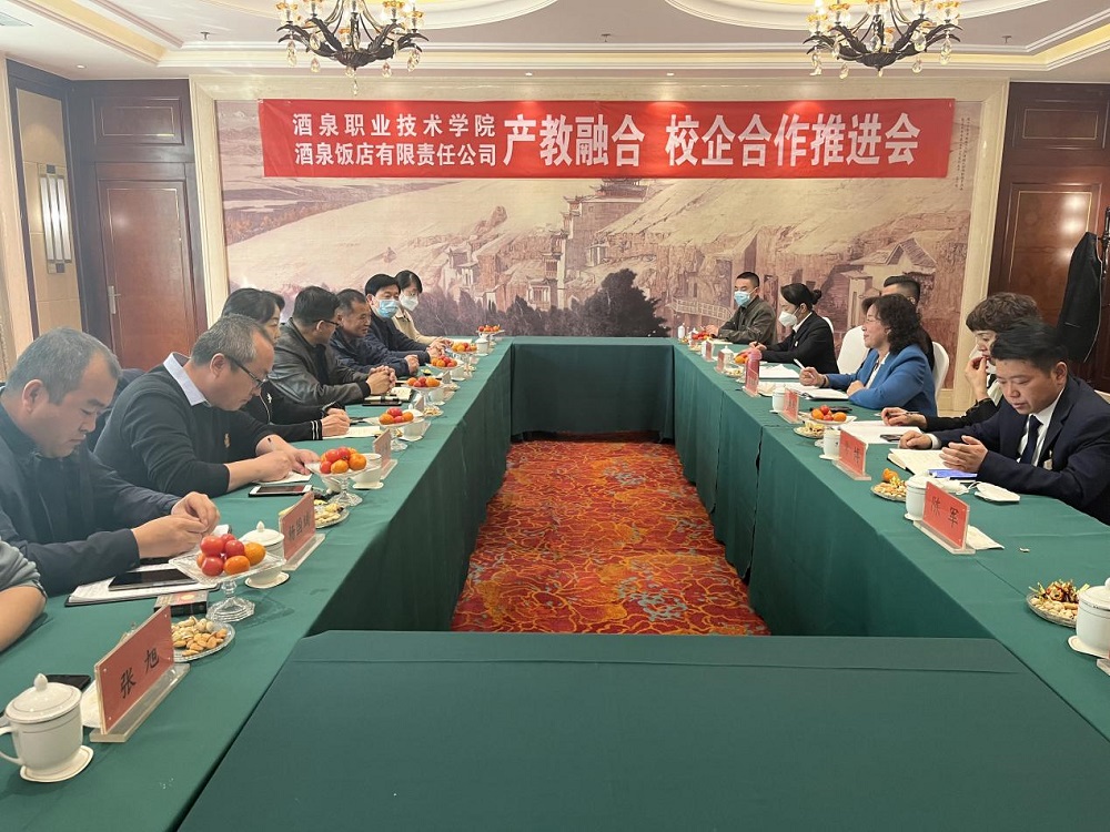 最后刘兴龙副院长表示,酒泉饭店作为区域内唯一一家老字号酒店,在区域酒店行业处于领先地位。多年来,酒泉职业技术学院和酒泉饭店紧密合作,积极打造校企命运共同体,在人才培养、"三教改革"、实习就业方面取得了丰硕的成果,特别在服务国家大战略,保障节会赛事方面做出突出的贡献。希望双方继续深化产教融合,加强校企合作,提升“4+1+2”教学模式内涵建设,为区域文旅产业发展做出更大的贡献。