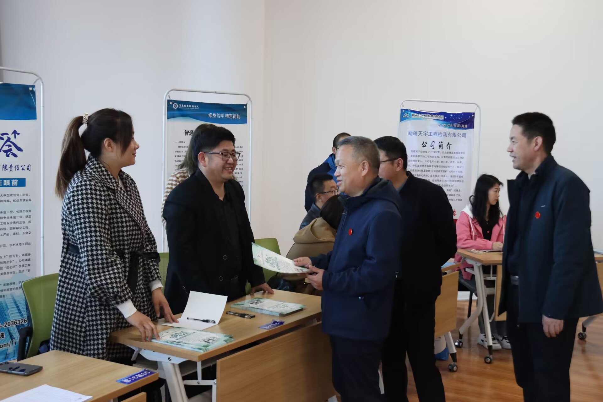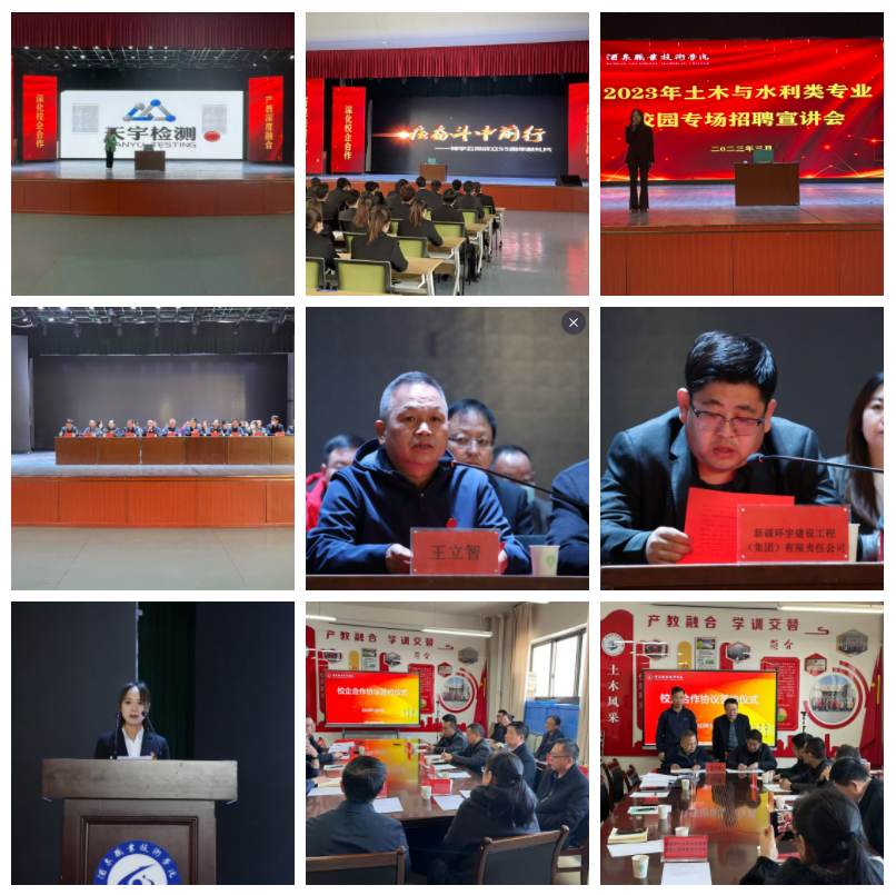 洽谈第一天,各参会企业从企业规模、企业资质、业务范围、企业荣誉和企业福利待遇等方面对企业进行了宣讲,加深了毕业生对企业的了解。洽谈会第二天,组织召开了洽谈会开幕式、双选会和校企合作交流会。开幕式上学校党委委员、副校长王立智进行了致辞,企业代表新疆环宇建设工程(集团)有限责任公司李友强副总经理、2023届毕业生代表翟琴同学进行了发言。新疆北方建设集团有限公司、新疆神宇水利水电建筑安装工程公司、新疆北新顺通路桥有限公司、新疆哈密东天山水务集团有限公、新疆兵团水利水电工程集团有限公司等企业代表参加了校企合作交流会并开展了校企合作协议签署。