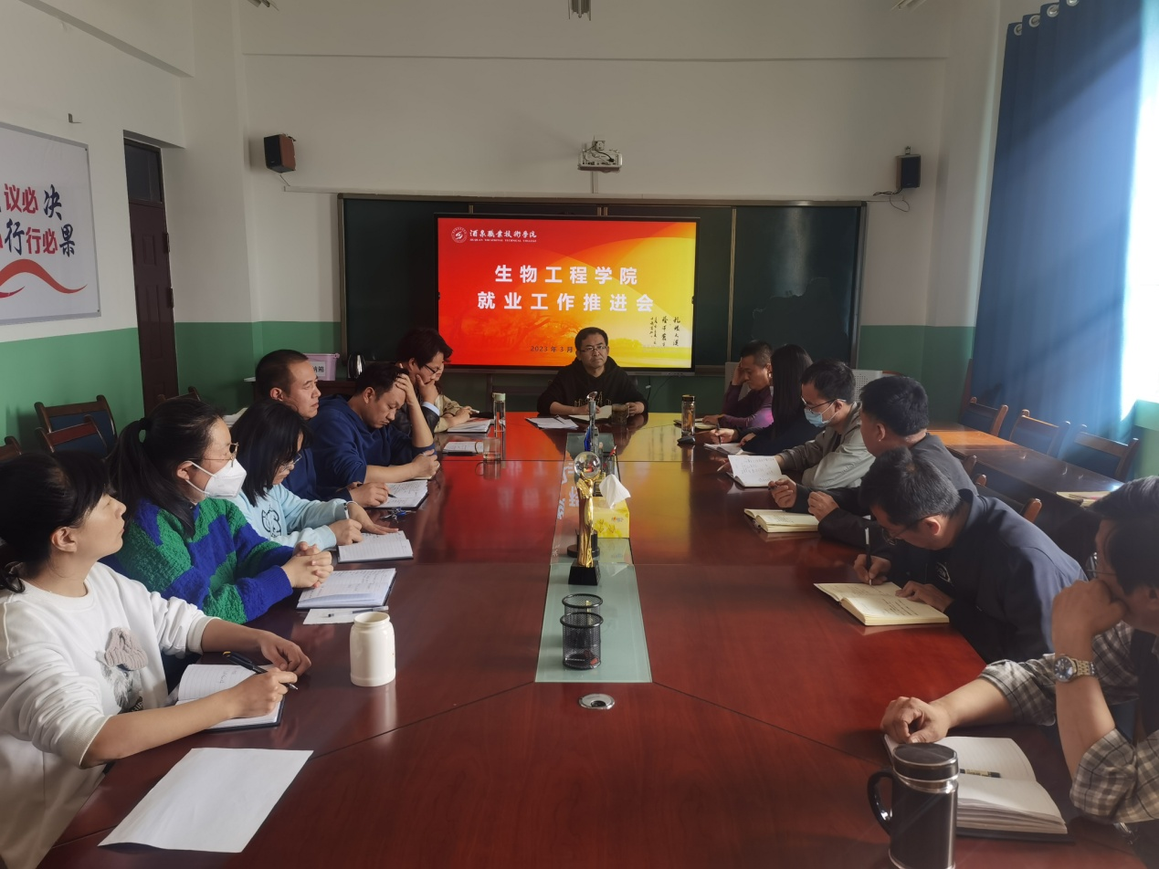 生物工程学院一直十分重视毕业生就业工作。本次就业工作推进会意在进一步明确当下毕业生就业工作重要性、紧迫性,帮助各班查找就业工作难点、堵点,为我院形成全员、全过程就业工作格局及统一就业工作思想发挥了积极作用。