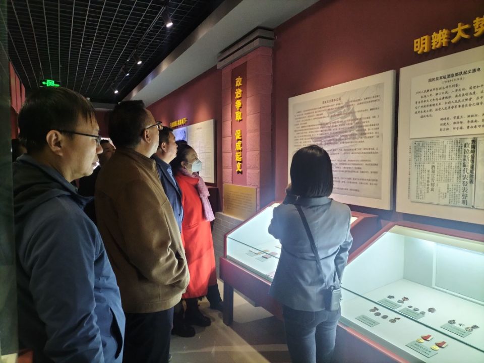 全体人员在讲解员的带领下走进馆内进行参观,依次参观了“解放西北,进军河西” “政治争取,促成起义” “接管酒泉,会商大计” “欢庆胜利,支援进疆”四个部分的展览。大量的历史文献、档案资料、历史照片、实物史料再现了当年风云激荡的岁月,生动还原了中国人民解放军第一野战军在彭德怀、习仲勋、王震、许光达等将领的率领下,进军河西、解放酒泉、酒泉会谈、接管玉门油矿、挺进新疆的事件场景。通过此次参观,全体人员接受了一次生动的党课教育,大家深切感受到中国共产党人追求真理的坚定信念和浴血奋战的大无畏革命精神。