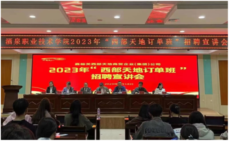 周麟副董事长介绍了嘉峪关市西部天地商贸有限公司的基本情况、员工薪酬待遇、人才需求状况、未来发展前景以及员工培训与晋升渠道等,鼓励同学们要把握订单班培养机会,珍惜优质就业岗位,更好更快实现高质量就业。经济管理学院往届毕业生罗天富、马海林、肖萍就自己入职后的工作情况、参与项目、职业发展、薪资福利等向学弟学妹们做了深入的分享交流。