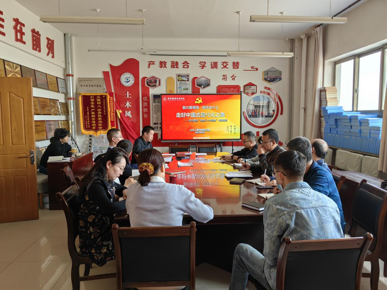 为深入贯彻学习党的二十大精神,引导广大教师全面准确把握中国式现代化的科学内涵,深刻认识中国式现代化在理论和实践上的创新突破,4月24日下午土木工程学院组织全体教师以《走好中国式现代化之路》为题开展学习贯彻“党的二十大精神”专题培训。
