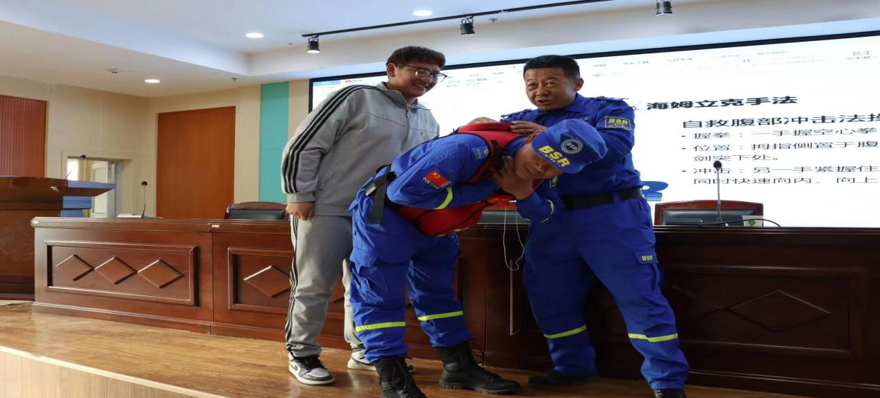活动邀请酒泉市蓝天救援队副队长兼培训部部长王如刚,进行了防灾减灾专题知识科普宣传。王队长引用发生的真实案例和救援故事,为师生讲解如何防范地震、火灾、洪水、暴雨、大风等自然灾害以及遇险紧急求救与自救。