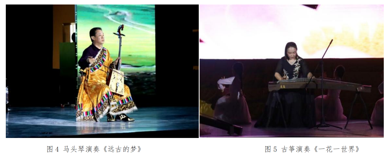 李名轩老师弹奏的《关山月》质朴而豪放,极富诗意;曾鸿斌老师演奏的《远古的梦》,悠扬的马头琴琴声将台下的观众带到了蒙古辽阔旷达、舒展起伏的草原山川之中。