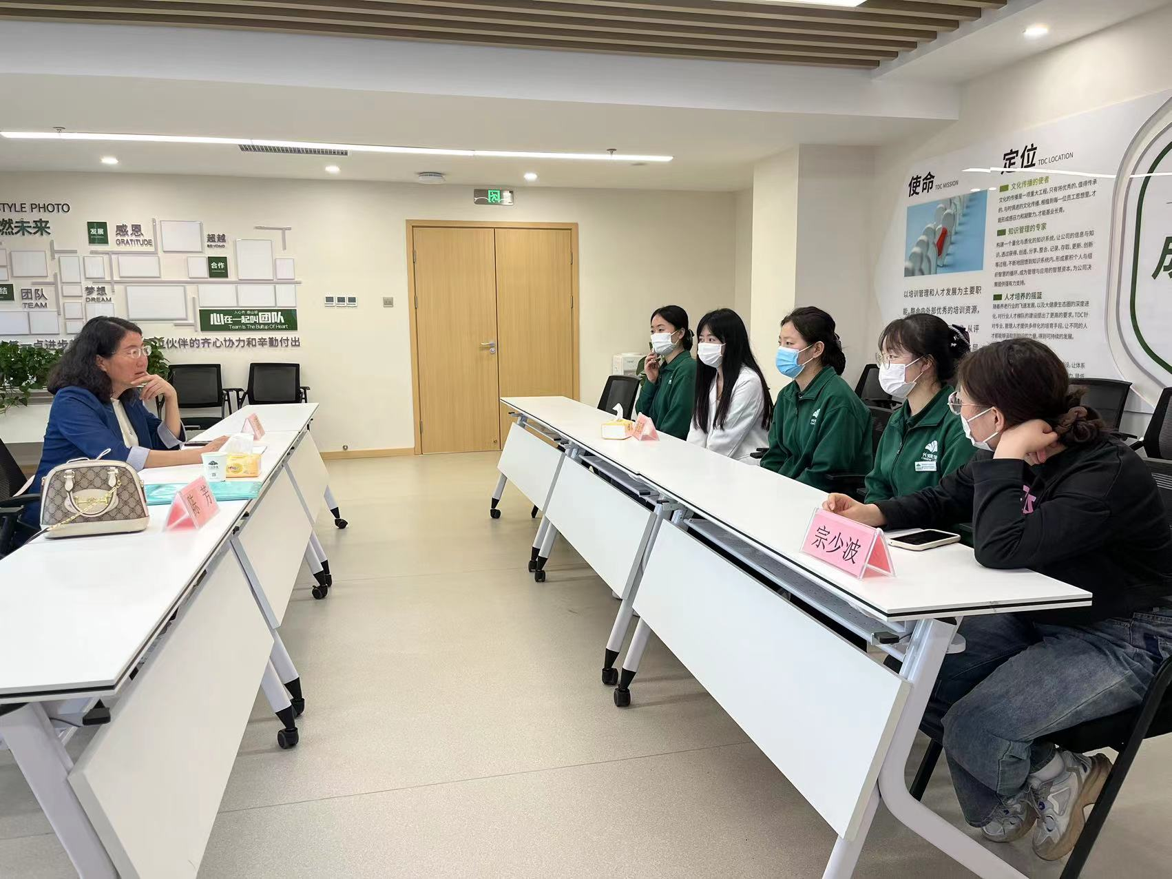 在长安闾里-西安颐信养老服务公司,由负责公司人事管理的韩丹经理介绍了公司规模、建设、运营、管理等情况,在公司运营部经理蒋玉霞的带领下,参观了西关街道综合养老服务中心、枣园街道综合养老服务中心。