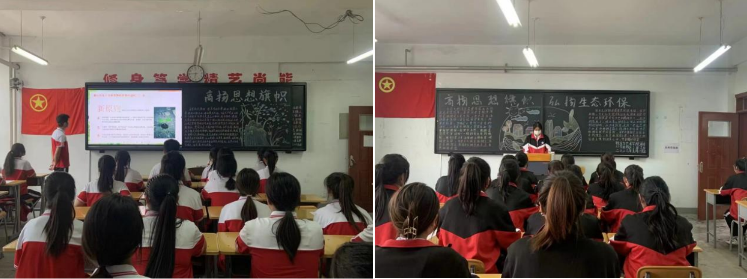 召开主题团日,学习环保思想。各团支部深入学习习近平总书记生态文明思想,组织开展“高扬思想旗帜,弘扬生态环保”的主题团日活动,活动以展示新时代生态环境保护工作突出成就、讲述参与美丽中国建设生动故事为重要内容,让学生们深刻的领悟到弘扬生态环保的重要性,和共建和谐美丽的校园深远意义。