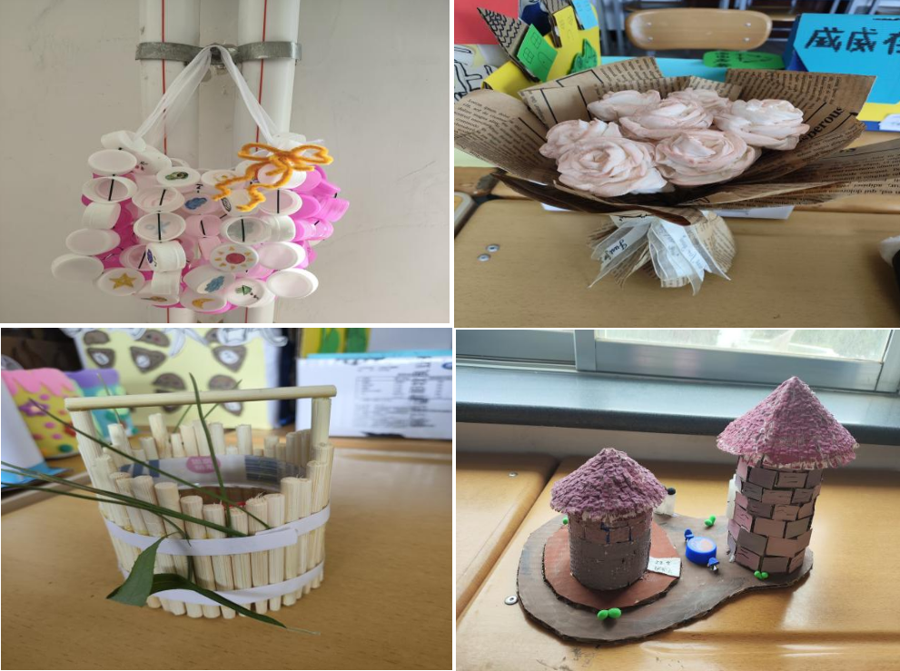 绿色实践制作,践行发展理念。学生利用生活中的“旧物”或“废品”,发挥想象力,结合科技、环保观念,经过动手实践,实现了“变废为宝”。同时开展环保手抄报比赛,用一幅幅图文并茂、主题鲜明的手抄报,展示了节水、节粮、节电、节纸的重要性,倡导学生做好垃圾分类,共建绿色校园。