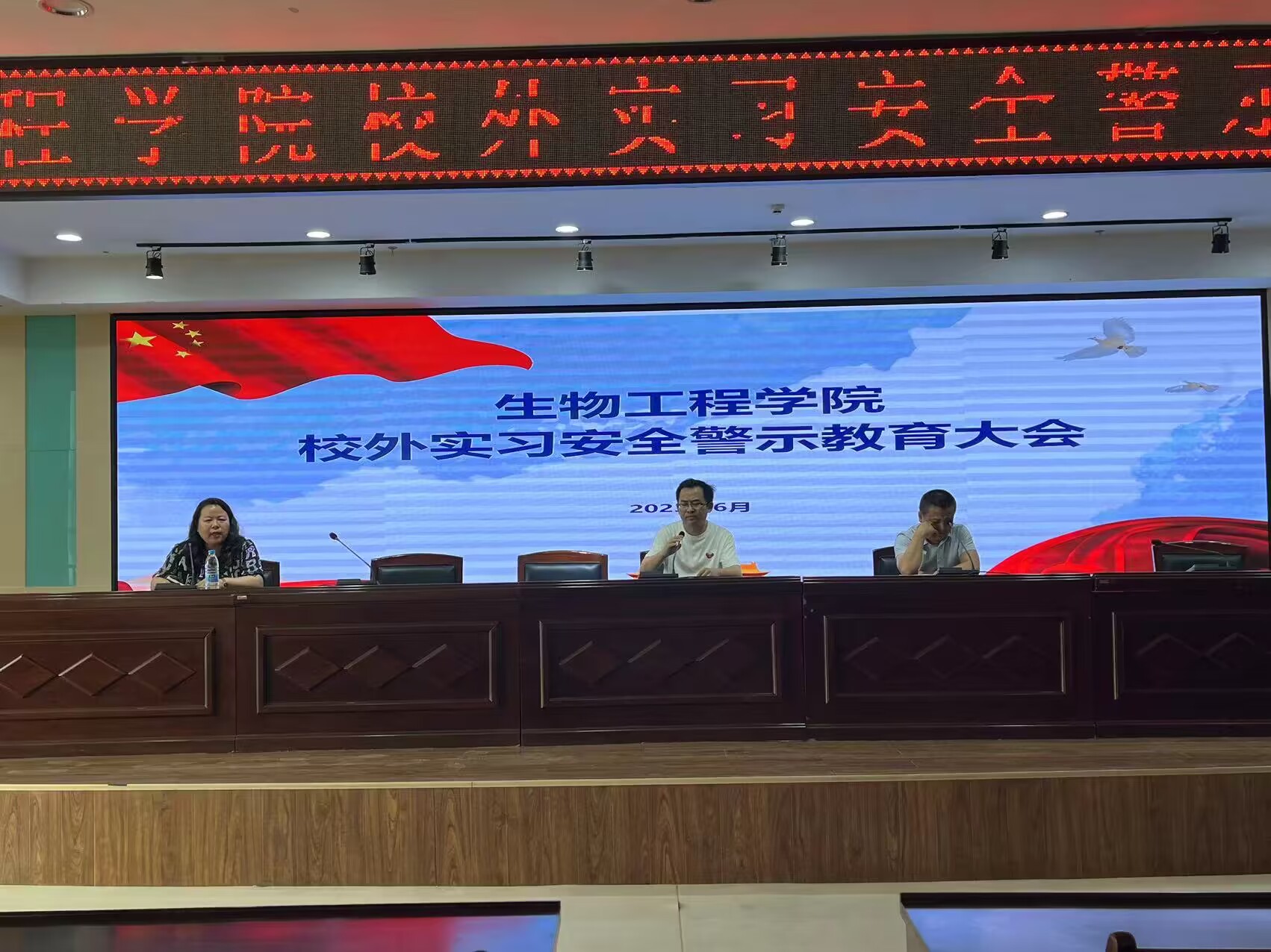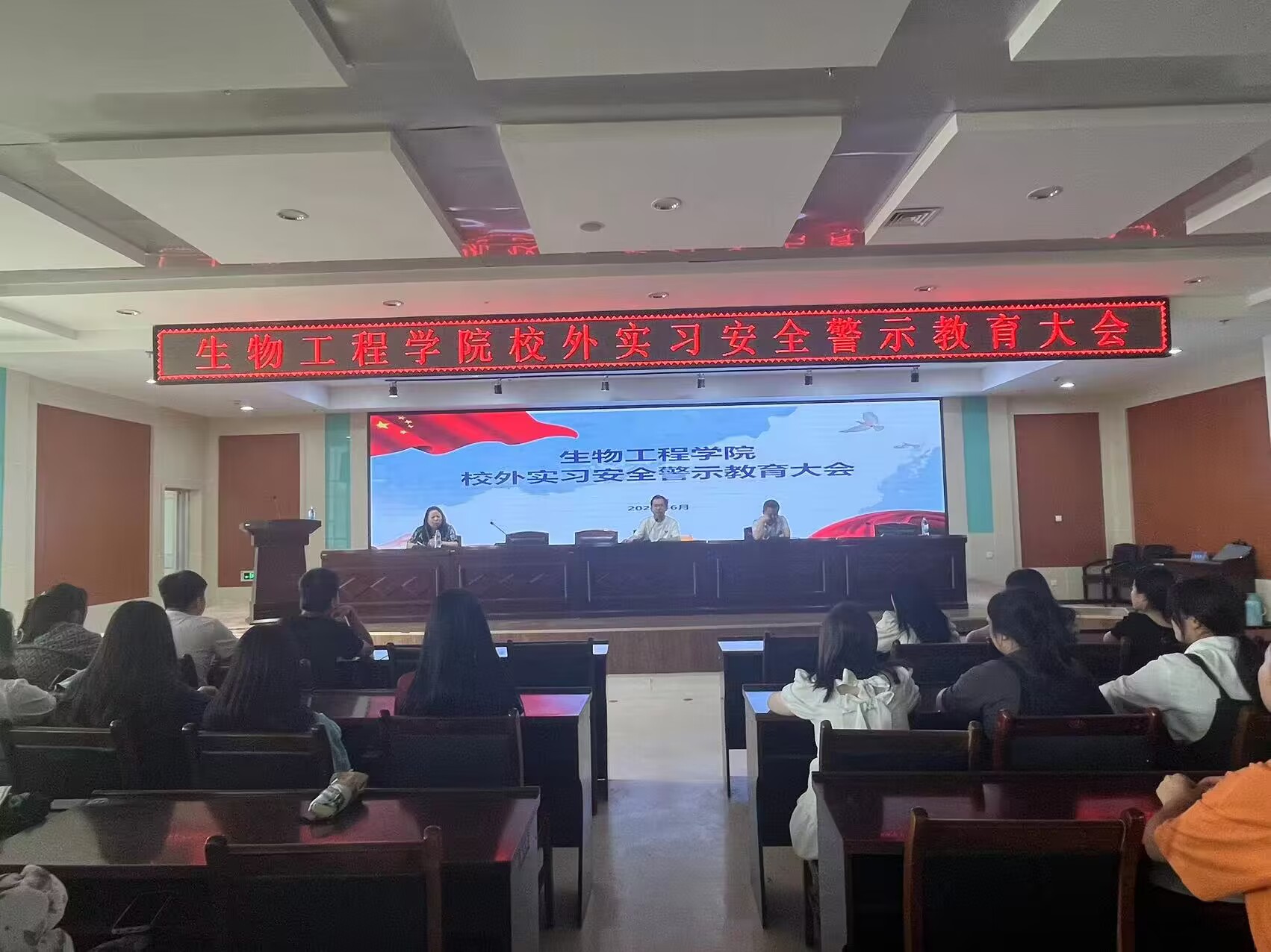 6月19日下午,生物工程学院在图书馆四楼会议厅召开校外实习安全警示教育大会。会议由副院长庞捷主持,2021级畜牧兽医、动物医学、药品生物技术专业近150名同学和相关教学系主任参加。