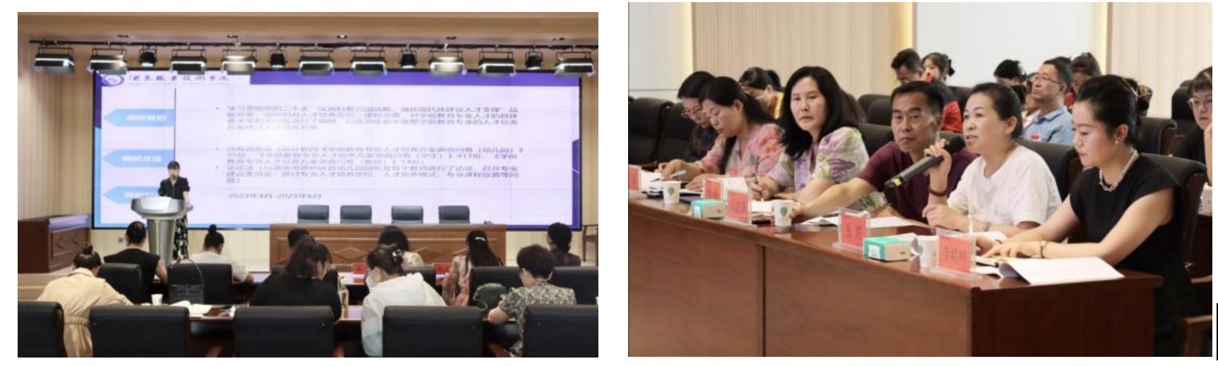 与会人员分组通过听取汇报和现场讨论,审阅了学前教育、早期教育、表演艺术、艺术设计专业人才培养方案,肯定了各专业的人才培养目标和毕业要求,并结合行业发展趋势,围绕学院办学思路和培养目标,对专业核心课程、实践课程、课程体系的支撑关系等方面提出意见和建议。同时指出各专业要瞄准用人单位需求,紧密结合学生发展诉求,突出专业特点,培养学生创新意识和提升创新能力。