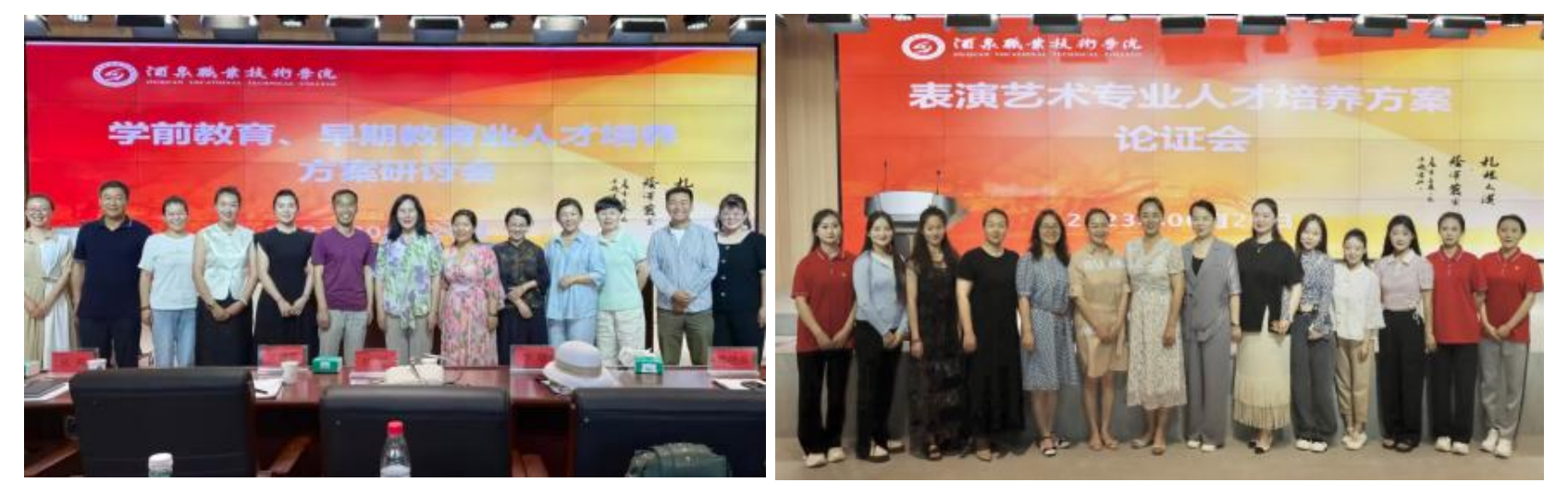 院系动态 > 正文为持续深化教育教学改革,全面提高技能型人才培养质量,创新人才培养模式,教育与艺术学院6月20日召开专业人才培养方案论证会。学院领导班子成员、各系主任和专业骨干教师、学生代表参加了此次论证会。会议邀请了来自酒泉市实验幼儿园、第二幼儿园、第三幼儿园、附属幼儿园、凯旋苑幼儿园、金水湾幼儿园、新语乐幼儿园、皮个布国际早教俱乐部、酒泉全纳早教机构、恩吉拉早教中心、陈思思古筝艺术学校、心旅程艺术培训中心、甘肃左右广告装饰工程有限公司等14家企事业单位的行业专家及毕业生代表,为我院2023级人才培养方案的制定和修订提出建设性指导意见,学校现代职业教育研究院院长吴建新参加了论证会。