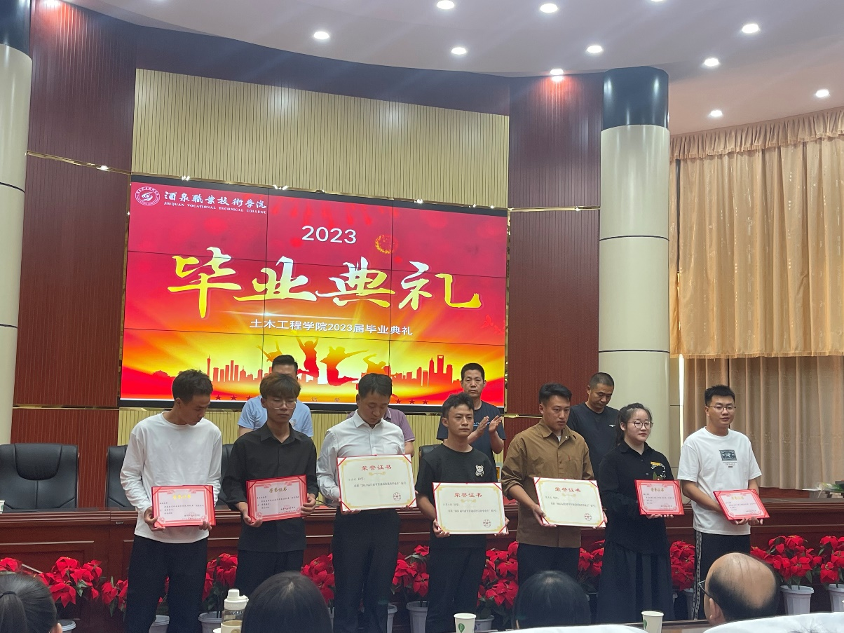 在毕业典礼仪式上,宣读了省级和校级优秀毕业生名单和2023届毕业生名单。随后学院领导为省级和校级优秀毕业生代表颁发了证书,为毕业生代表颁发了毕业证。