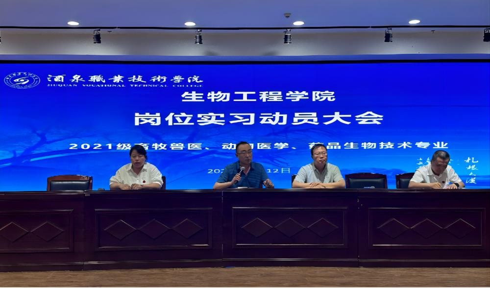 为引导学生顺利完成从校园学习到企业实习的过渡,以积极心态投入到岗位实习,2023年7月12日下午,生物工程学院2021级学生岗位实习动员大会在图书馆四楼会议室顺利召开。会议由生物技术系主任薛新花主持,学院党支部书记、院长柳立新,学院党支部副书记张涛,实习指导教师及143名实习学生参加了大会。