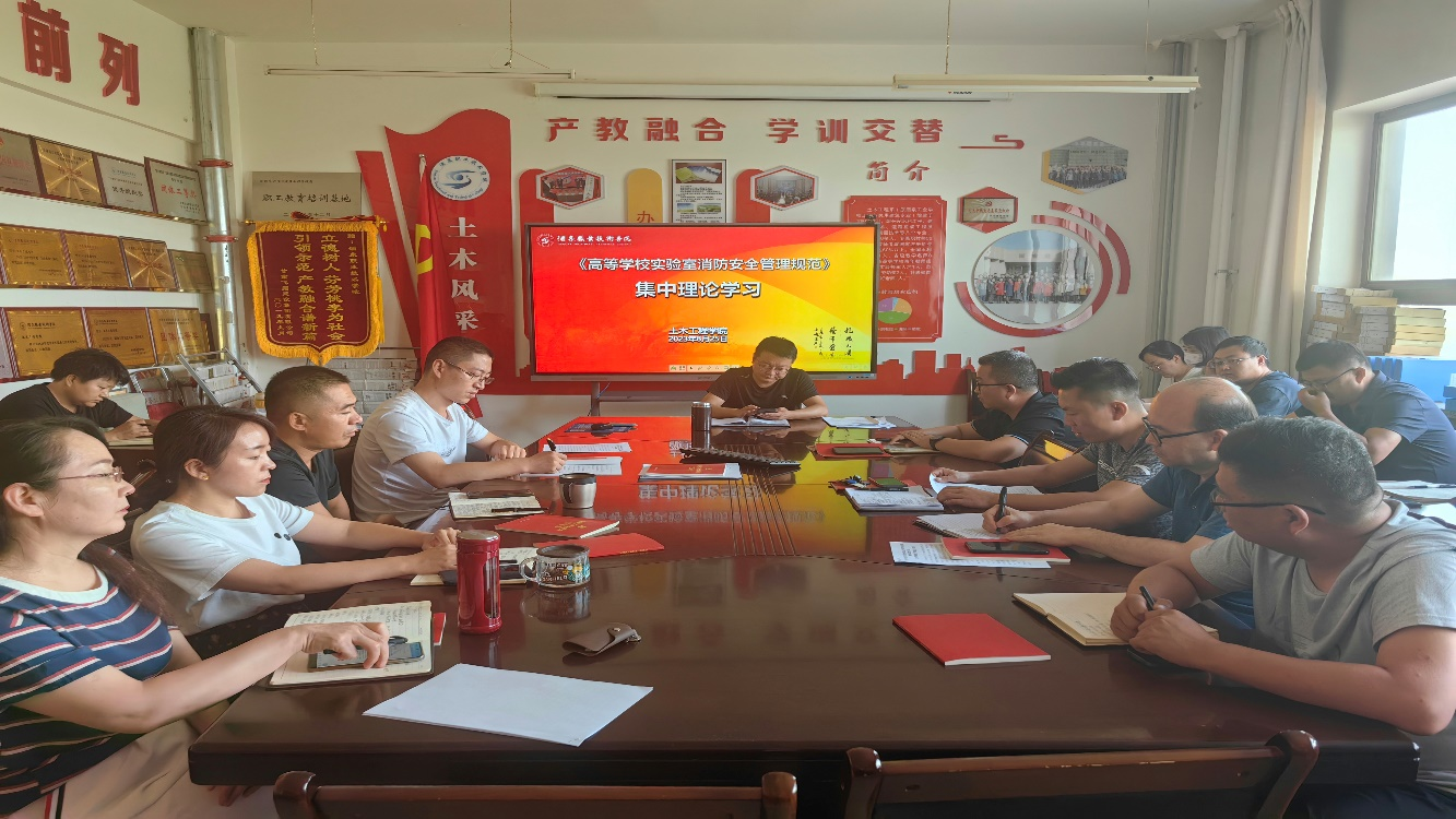 8月25日下午5时,学院召开了《高等学校实验室消防安全管理规范》集中理论学习活动,组织全体教师认真学习了《规范》有关内容和要求,切实提高思想认识,进一步明确了实训室岗位工作职责,并强调了各项消防安全管理措施。党支部书记、院长田政锋同志指出,安全工作无小事,各教学系及实训中心要高度重视实训室安全工作,明确安全管理职责,提高师生安全意识,严格落实实训室相关安全规范及管理制度,采取有效管控措施,规范实训室运行管理,防患于未然,坚决杜绝实训室安全事故发生,切实维护校园安全稳定。