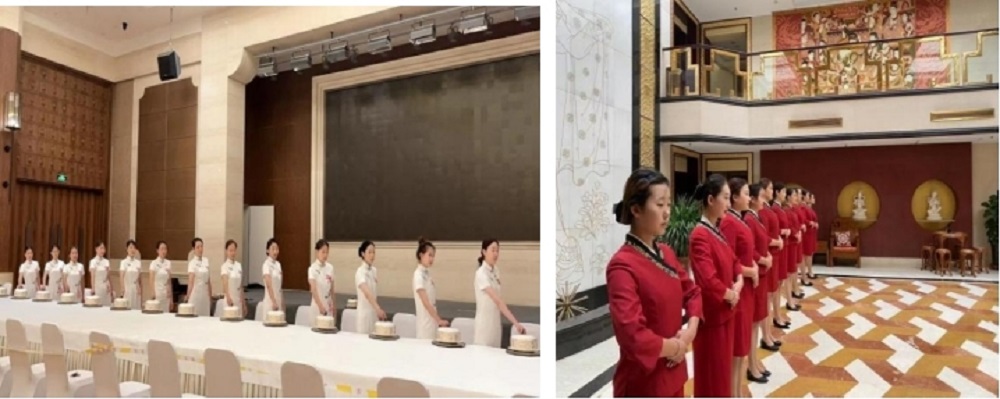接到任务后,学校高度重视,积极筹备,8月24日到达敦煌国际酒店后,同学们迅速进入状态,企业导师和学院老师按照文博会的服务标准,高质量、严要求指导学生提升专业技能水平,同学们用精益求精的态度展示酒职学子的专业素养,全力投入到前厅服务、咨询引导和餐饮保障工作之中。