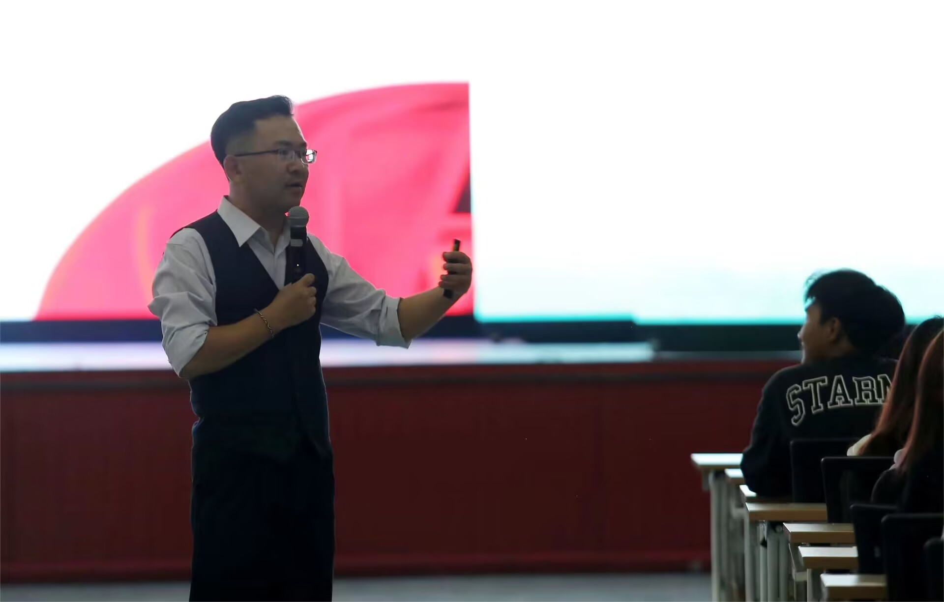 主讲人庞捷以“迈好大学第一步”为题,从十个方面向新生介绍了学生工作在教育、管理、服务等方面的内容及要求。他强调学院学生工作一直秉承“以学生为本,服务学生成长成才”理念,重点是做好思想引领、严抓学风建设、筑牢安全底线、丰富课余生活、勇于创新实践。