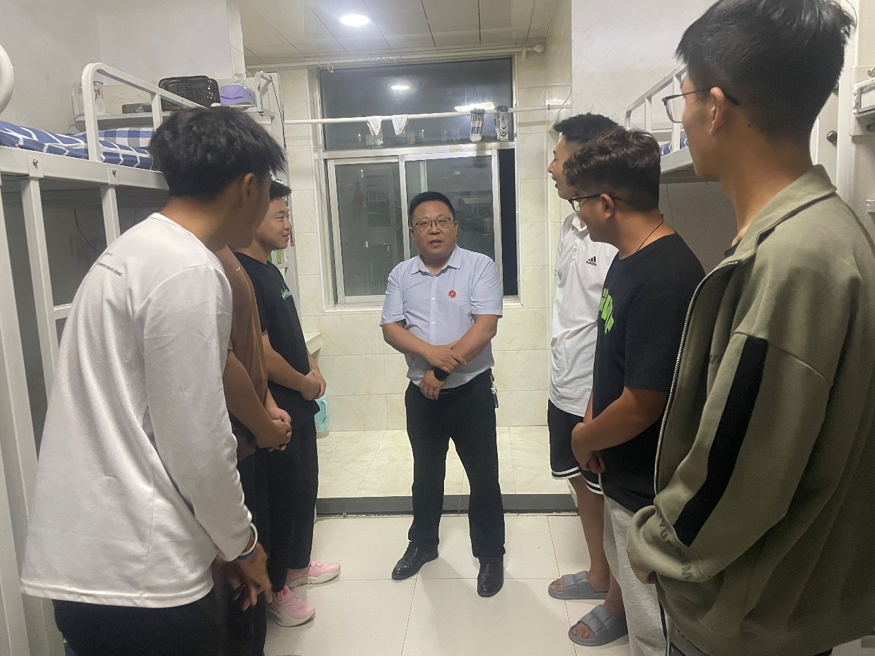 为深入了解新生开学阶段的思想状态和适应情况,9月7日,化工学院党支部书记、院长白锦川、党支部副书记孔祥波、副院长徐军新和学生管理老师、班主任到学生宿舍看望2023级新同学,送问候寄希望。