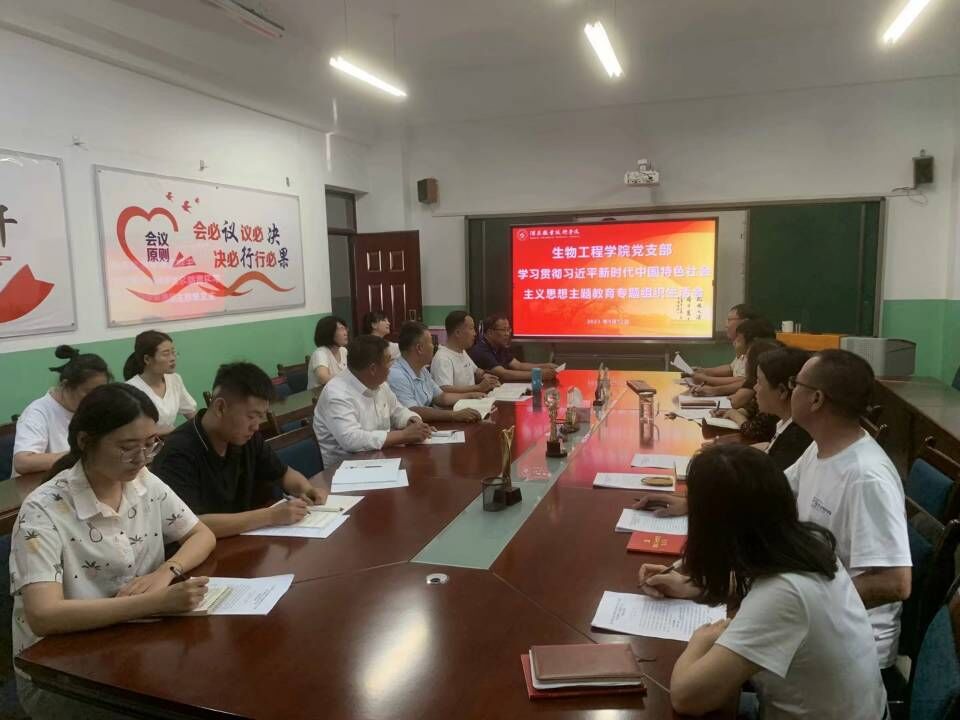 9月12日下午3:10,生物工程学院党支部在逸夫楼315会议室召开学习贯彻习近平新时代中国特色社会主义思想主题教育专题组织生活会。会议由学院党支部副书记张涛同志主持,生物工程学院党支部全体党员参会。