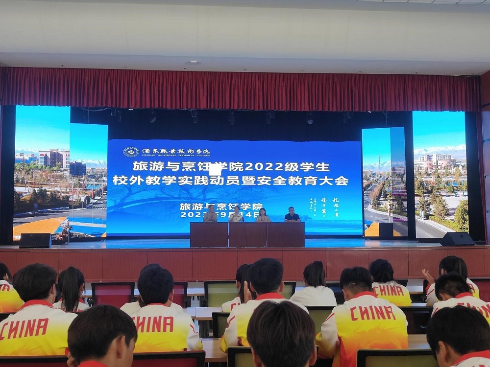 为进一步提高学生的综合岗位能力和职业素养,引导学生做好校外教学实践的各项准备工作。旅游与烹饪学院于9月14日上午10点在胡杨文化中心召开旅游与烹饪学院2022级旅游管理、酒店管理与数字化运营、研学旅行管理与服务及烹饪工艺与营养专业专业的校外实践教学动员大会暨实习安全教育大会。旅游与烹饪学院副院长王晓梅主持,2022级各专业班主任以及学生参加会议。