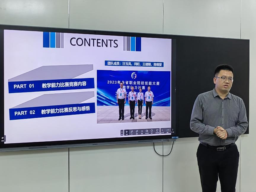 甘肃省职业院校技能大赛教学能力比赛一等奖获得者、学院优秀党员闫旺老师结合参加大赛情况分享了2021-2023年参加教学能力比赛经验。