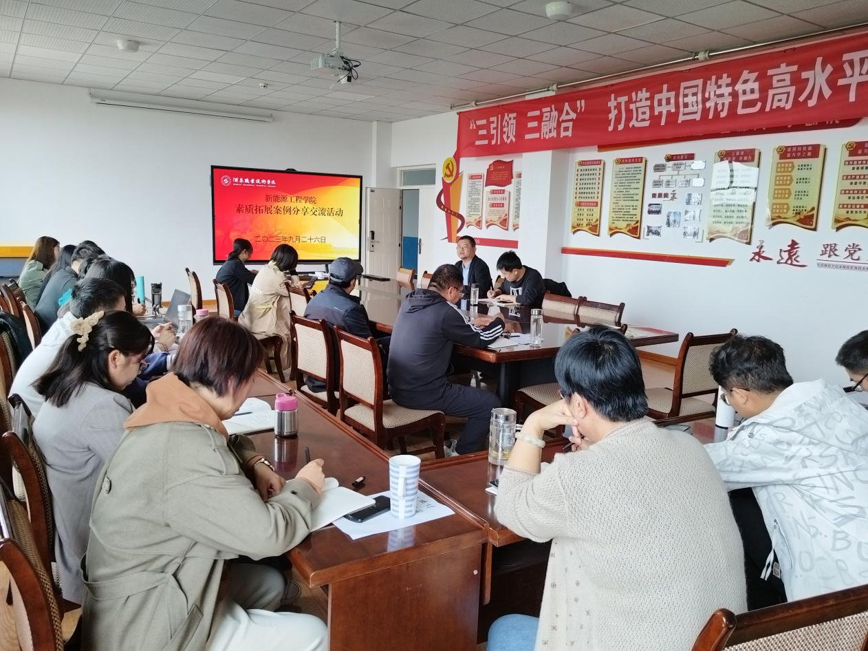 2023年9月26日下午,新能源工程学院组织全体教职工开展了素质拓展案例交流分享活动。各参会老师根据自己的教学实际和任课情况,分别对素质拓展案例进行了分享,并且在分享过程中结合自己的教学经历和教学心得,对以后素质拓展教育的发展方向进行了交流,之后相互进行了评价。