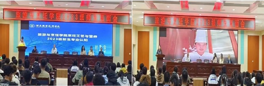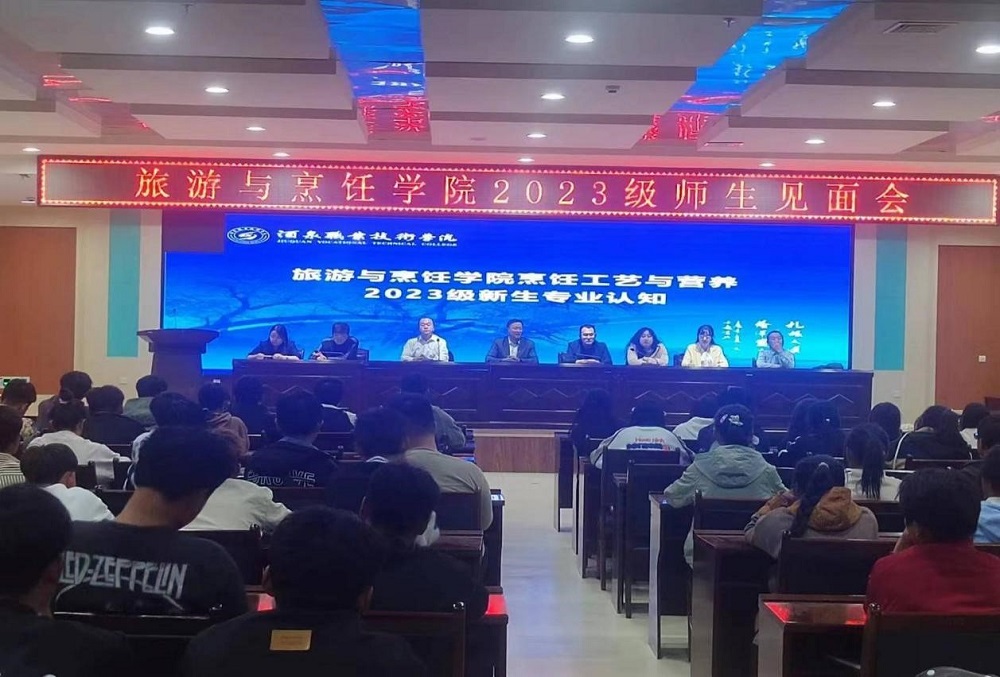 院系动态 > 正文为使我院烹饪工艺与营养系学生全面、系统的熟悉学科背景,明确学习方向,更好的适应大学生活,我院烹饪工艺与营养系于9月27日晚在图书馆4楼会议室召开了2023级烹饪工艺与营养系专业认知暨师生见面会,学院领导班子、全系教职工及烹饪工艺与营养专业2023级新生参加了此次会议。