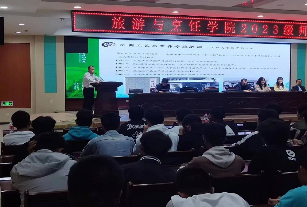 烹饪工艺与营养系杨国斌主任就烹饪专业发展背景、人才培养模式、专业内涵建设的具体实施方法、就业前景、教学团队进行细致的解读,对烹饪学子提出“筑匠魂、怀匠心、守匠情、践匠行;有厨艺、有厨德、有厨志,有厨道”的28字学习建议。引导学子深入认识本专业,培育专业自豪感,激励学生奋发向上,造就辉煌人生。