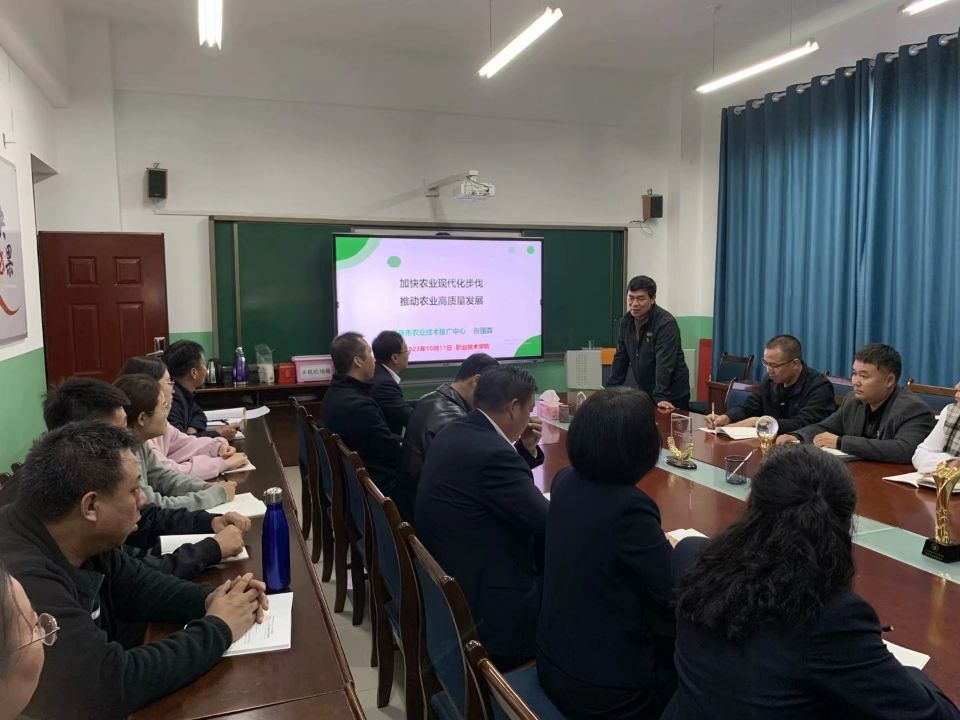 10月11日下午,为深入开展好“学习身边榜样”活动,推进学习贯彻习近平新时代中国特色社会主义思想主题教育走心、走深、走实,不断提高党员队伍建设质量,激发党组织生机活力,生物工程学院党支部开展“身边榜样讲党课”主题活动,特别邀请“国务院特殊津贴获得者、全国十佳农技推广标兵、全国最美农技员、甘肃省五一劳动奖章”等荣誉称号获得者张国森同志为全体党员上了一堂接地气、有温度、有深度的专题党课,生物工程学院党支部全体党员参会。