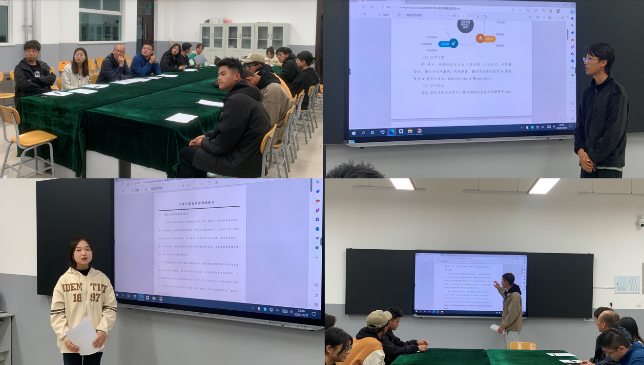 为推动首届酒泉职业技术学院“全国大学生职业规划大赛”校赛顺利进行,10月17日晚,电子与信息工程学院于弘毅楼B座202团学办公室举行职业规划大赛院内选拔赛。张炜衡、刘然、张吉强、孙浩老师按照赛道规则对参赛学生做了现场评比。本次我院12位选手参加了选拔赛。