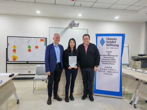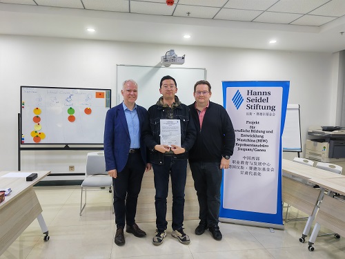 本次培训取得了良好的效果,培训过程氛围融洽,参培教师与魏纳特教授就教学活动的开展、职业教育理念等问题进行了深入的交流。通过本次培训教师们了解了德国职业教育的基本情况,同时也对德国职业教育中学生考核评价的方式有了一定的认识,开拓了新的思维;对参培教师今后教学实施过程有较大的启发;对参培教师课堂教学技能、教育教学管理能力和教育教学水平的提升有较大的帮助。