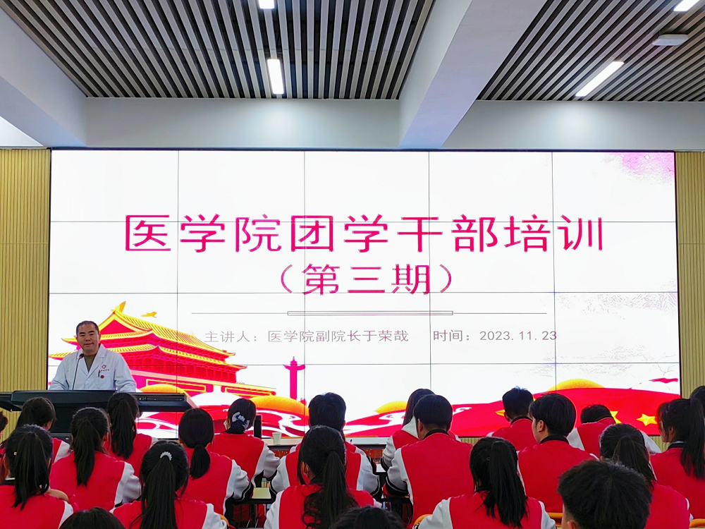 为提升新一届团学干部的综合素质,提高学生自我服务、自我管理、自我教育的水平,医学院于11月23日开展了“以党的二十大精神为指引,做新时代好青年”的团学干部培训。培训由医学院副院长于荣哉主讲,医学院团学干部103人参加此次培训。